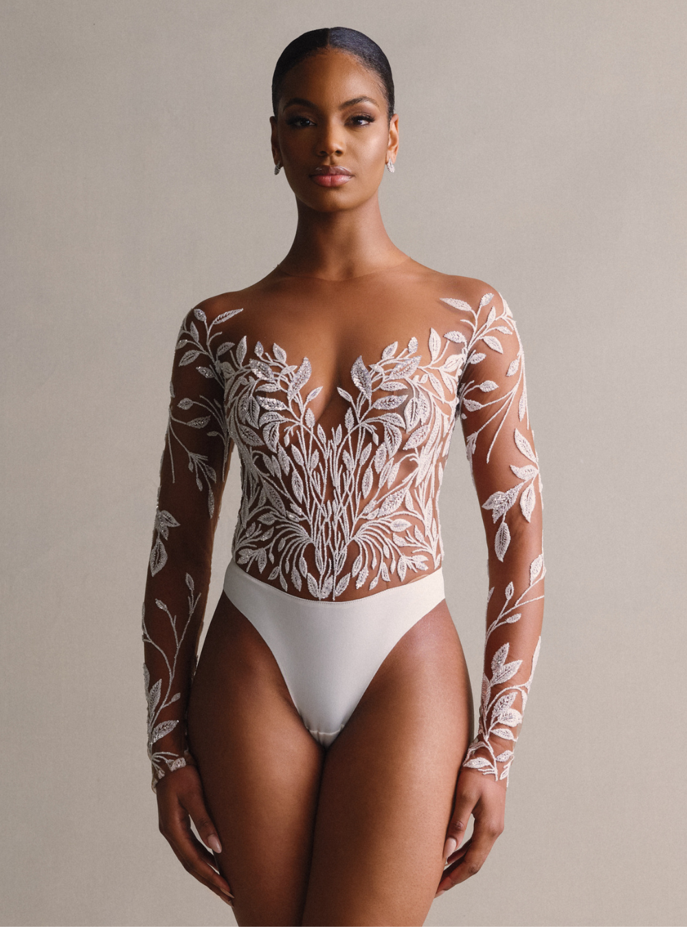 The first of it’s kind, Alonuko brings you vast range of bridal fits to adorn you on your special day. Ranging from a wide selection of form fitted gowns, to overskirts and princess silhouettes, and our brand new choice of separates- including embroidered leotards, draped corsets and optional skirts to complete your look.
